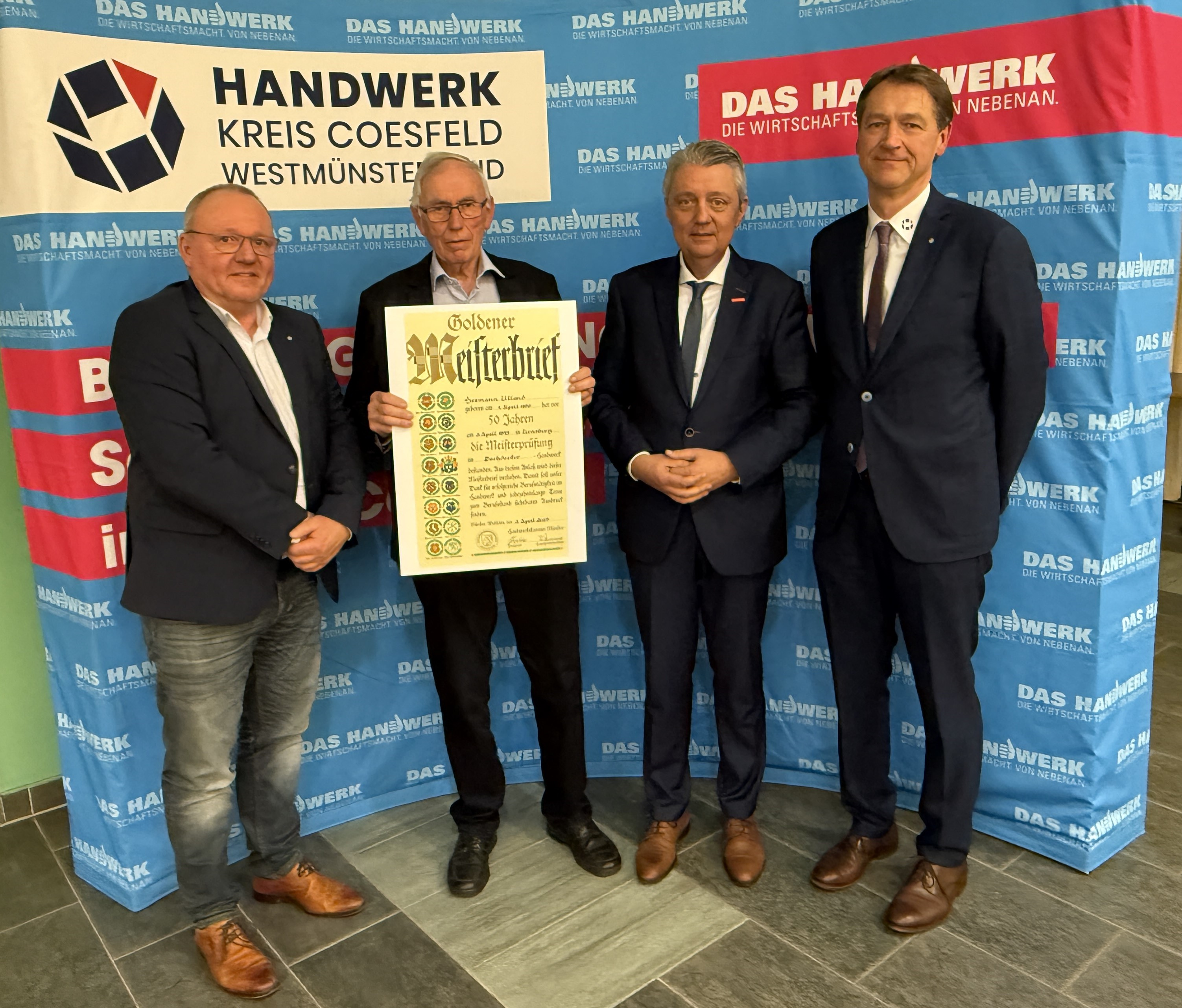 Goldener Meisterbrief: Hermann Ulland wurde vergangene Woche von der Handwerkskammer Münster mit dem „Goldenen Meisterbrief“ für 50 Jahre Dachdeckermeistertitel ausgezeichnet und er nahm seine Auszeichnung vor...